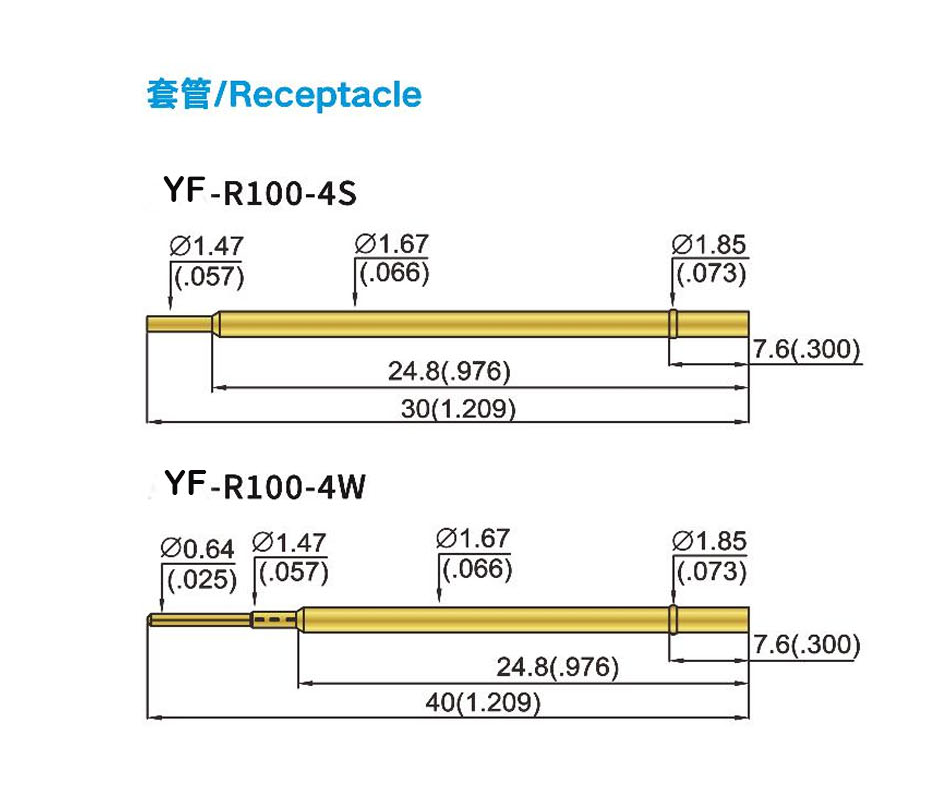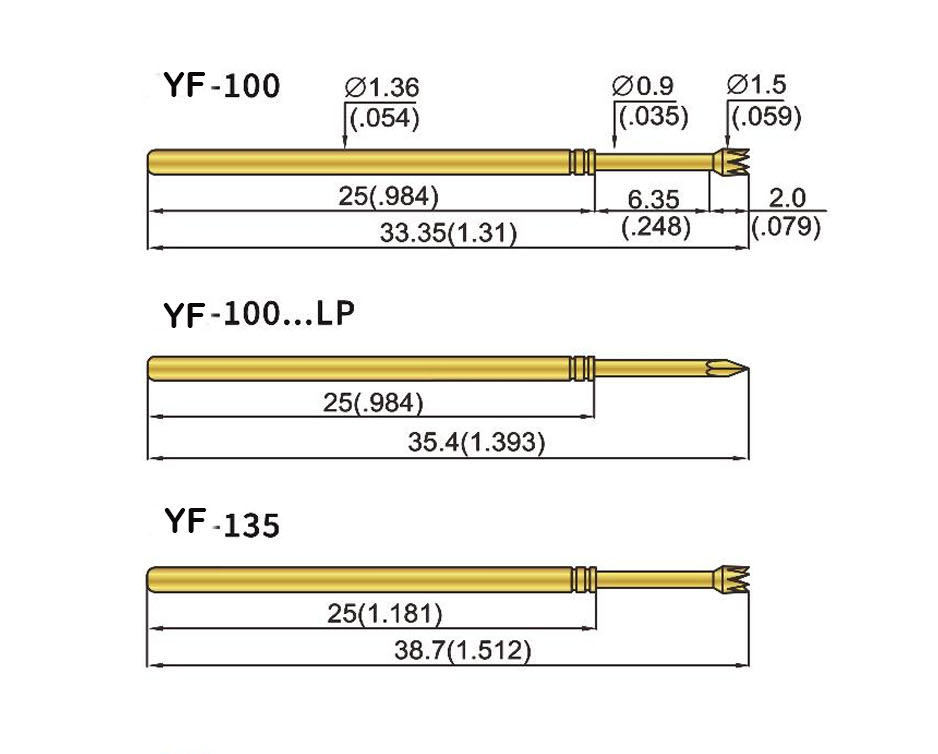 Customized Brass Barrel Stainless Steel Spring Test Probe YF100 for In-Circuit-Test (ICT)
