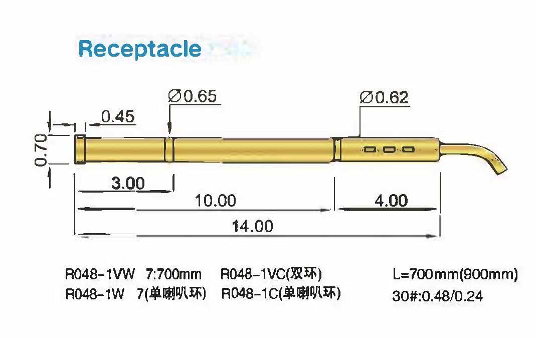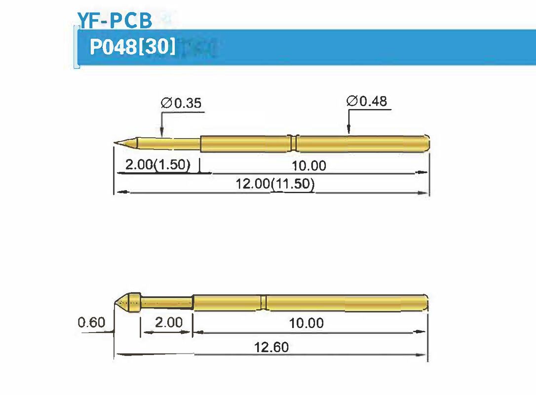 Customized Brass Barrel Stainless Steel Spring Test Probe P048 for In-Circuit-Test (ICT)